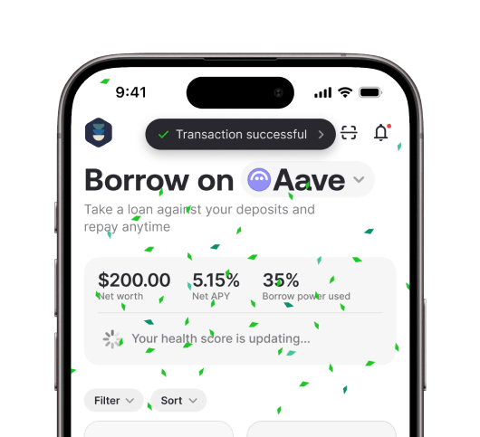 Liquidity at your fingertips. Borrow against deposits on Aave and Benqi at competitive rates. Monitor health scores and repay your loans at anytime, any place.
